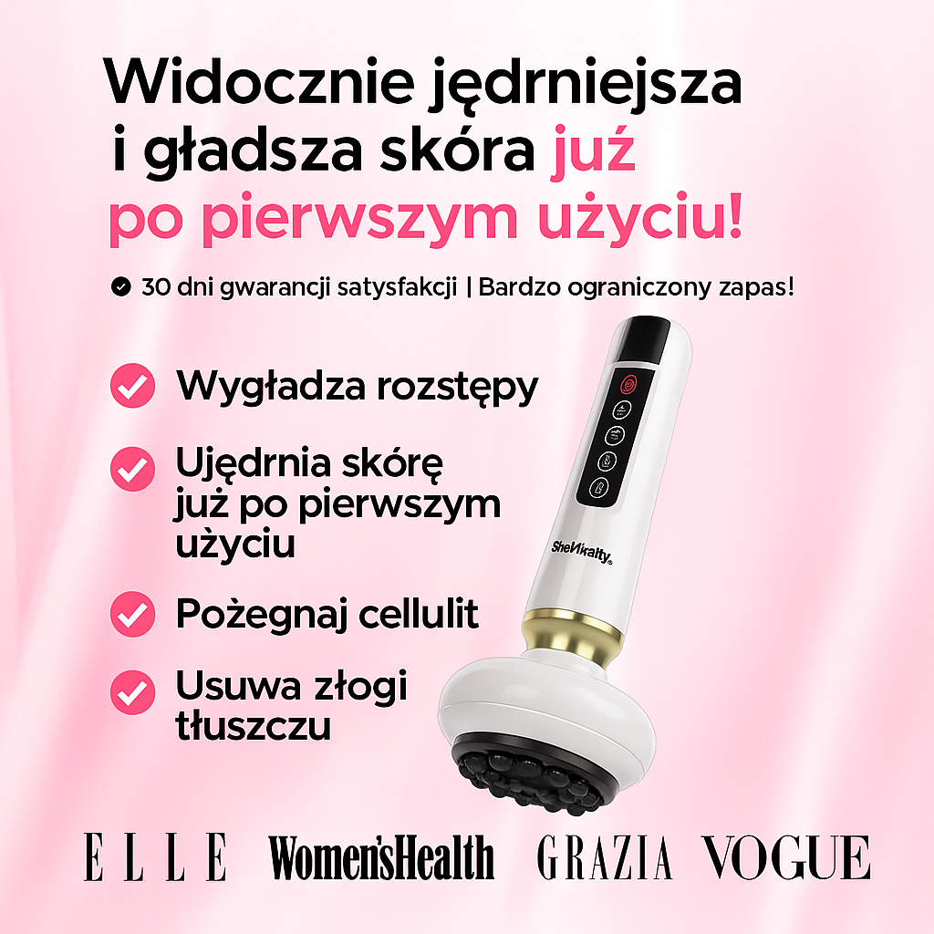 System SheVitality działa na wszystkie trzy warstwy powstawania cellulitu, wykorzystując technologię, która wcześniej była dostępna jedynie w zabiegach medycznych kosztujących ponad 3000 złotych.