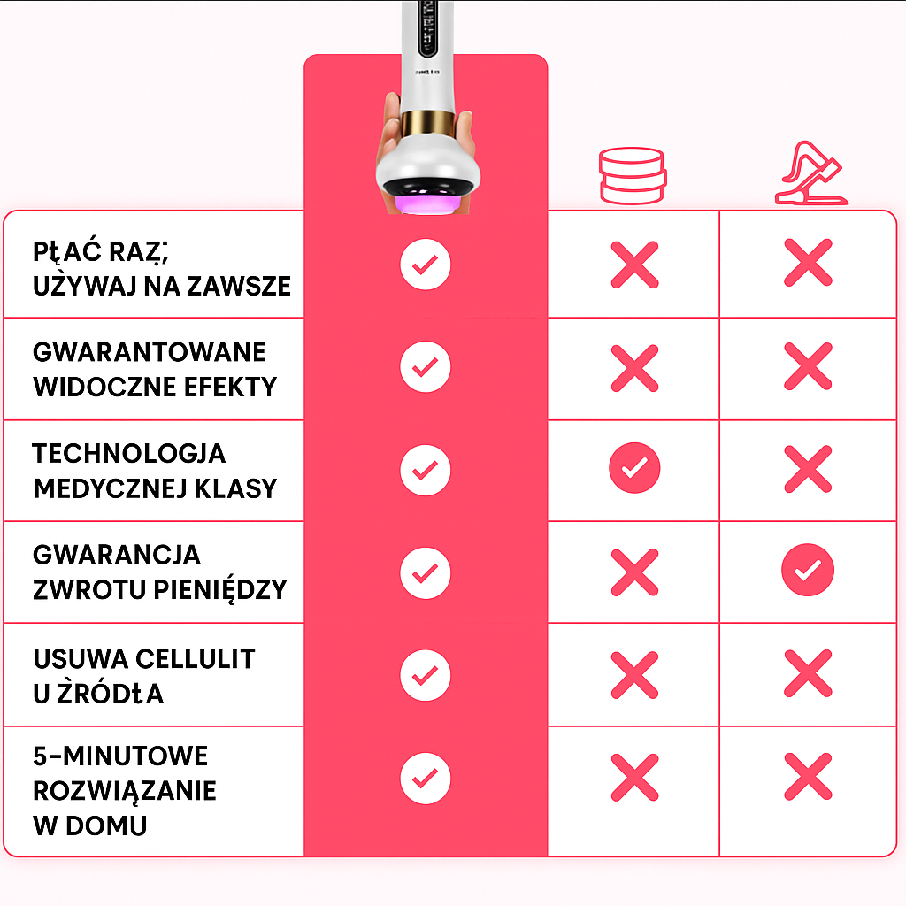 Dlaczego nasz masażer przewyższa produkty do pielęgnacji skóry i zabiegi salonowe.